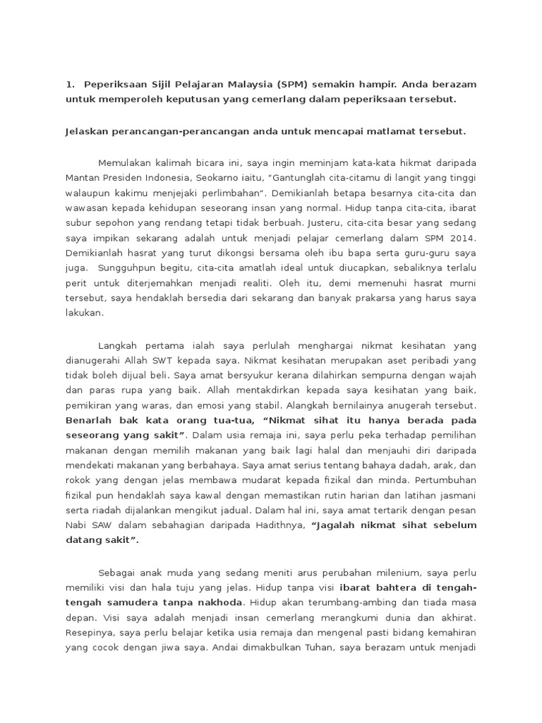 Doc Contoh Karangan Spm Bahasa Melayu Nur Aliza Academia Edu